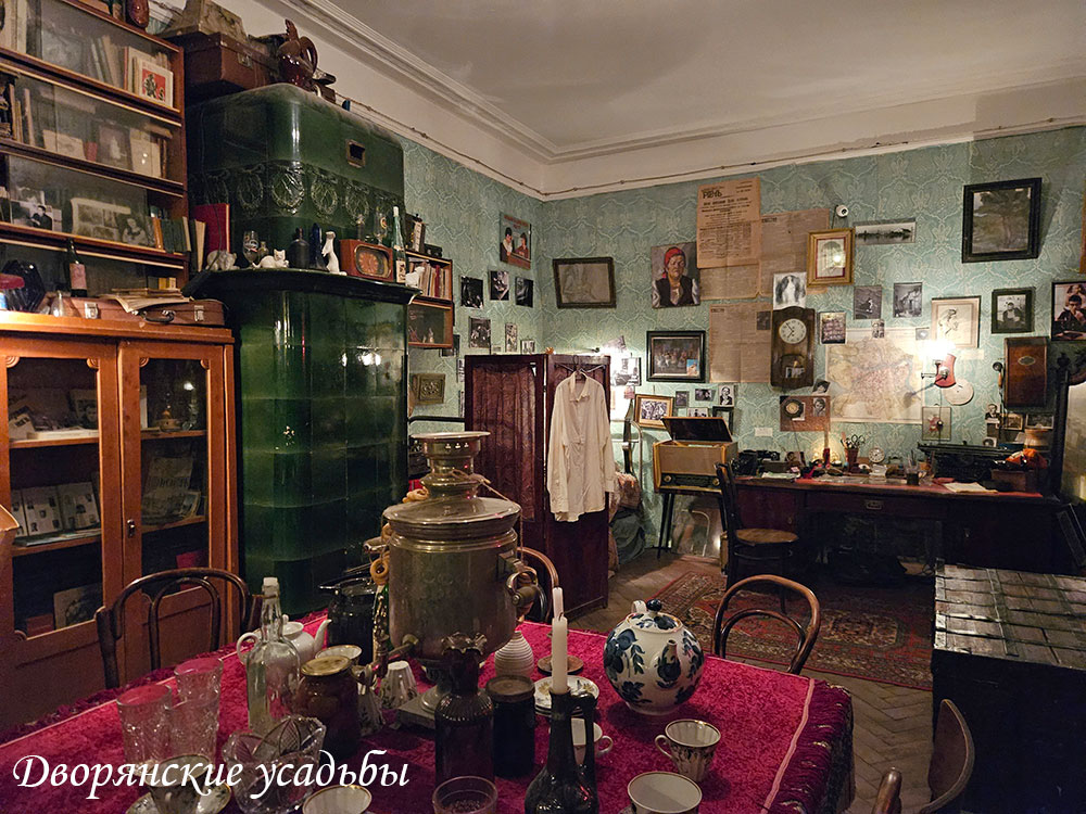 А если вам больше интересна история царских времён, то стоит обратить внимание на комнату с дореволюционным интерьером. В ней вы сможете собственноручно включить свет выключателем 1910-х годов, осветить старинной корабельной лампой слои газет начала века под обоями, найти тайные записки. Приподняв напольный ковёр, вы обнаружите штампы с двуглавым орлом. В комнате настоящая коллекция фотографий в рамках царских времен — вы рассмотрите религиозные сюжеты, свадебные сцены и всмотритесь в лица людей, живших столетие назад. Гид расскажет о быте и укладах начала века, как люди прошлой эпохи уживались в новый советский реальности. В комнату вы попадете через отдельный коридор длиной более 10 метров, заваленный предметами уже советского обихода.